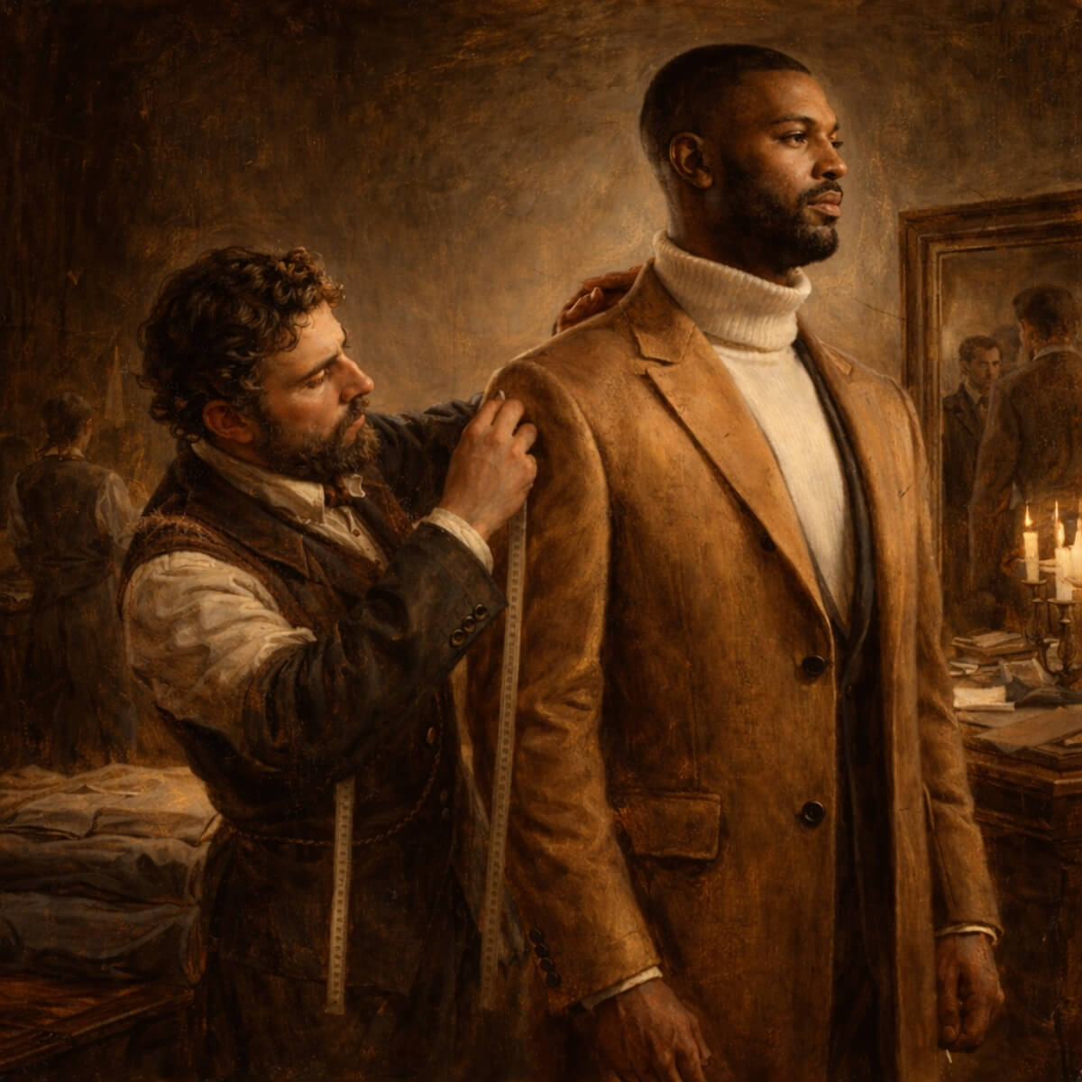 The moment I tried on the coat, I understood the difference. The cut is sharp and structured without ever feeling rigid. The cashmere has remarkable weight and a perfectly controlled drape. This is a wardrobe designed to endure, not to chase trends.